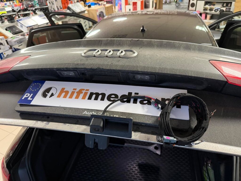 Postawiliśmy na fabryczną kamerę cofania zamówioną z autoryzowanego serwisu, z pełną integracją z systemem MMI. Wszystko działa automatycznie: po wrzuceniu wstecznego biegu, na ekranie pojawia się obraz z tyłu wraz z dynamicznymi liniami pomocniczymi, które śledzą tor skrętu kół.
