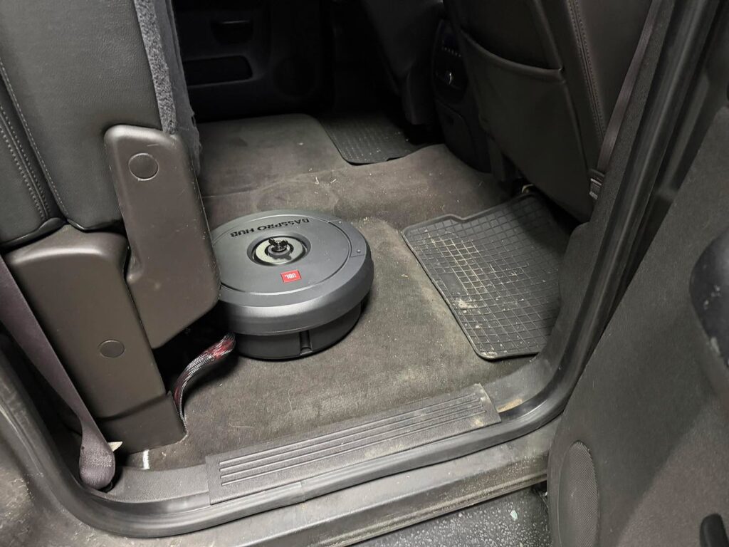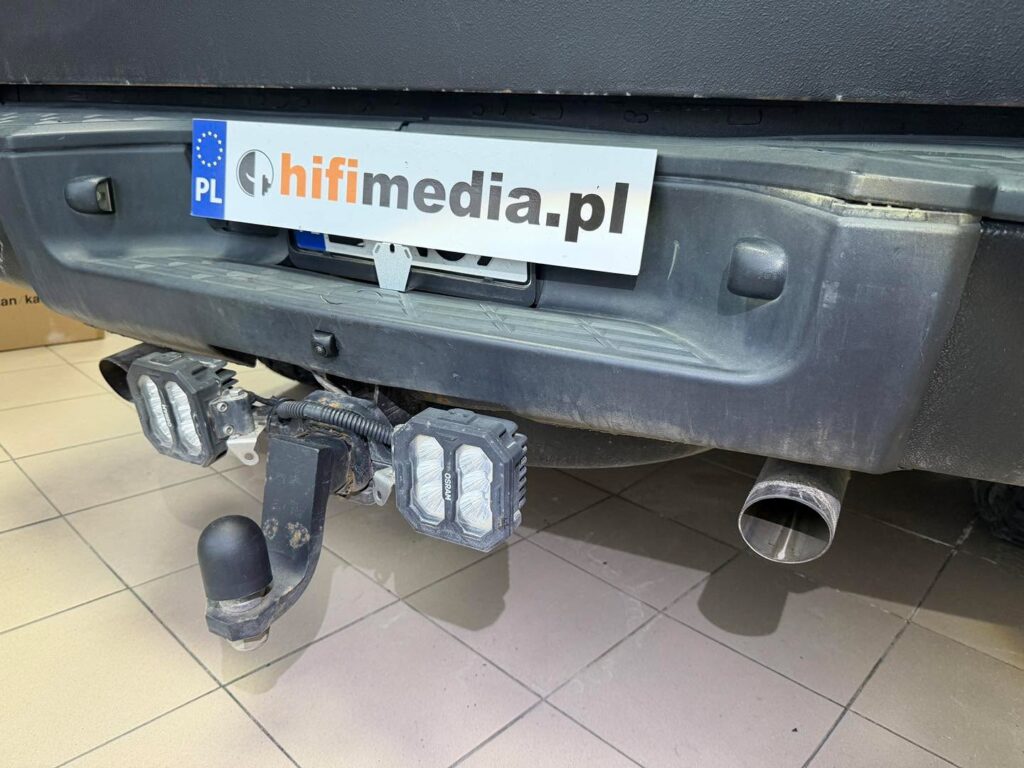 Dla dopełnienia sceny muzycznej pod tylnym siedzeniem zamontowaliśmy subwoofer JBL BassPro Hub – aktywny sub z wbudowanym wzmacniaczem, który dodaje głębi i pełni tam, gdzie same głośniki już nie sięgają. Montaż pod siedzeniem to sprytne rozwiązanie – zyskujemy profesjonalne basy bez utraty choćby centymetra przestrzeni ładunkowej pickupa. 🔊