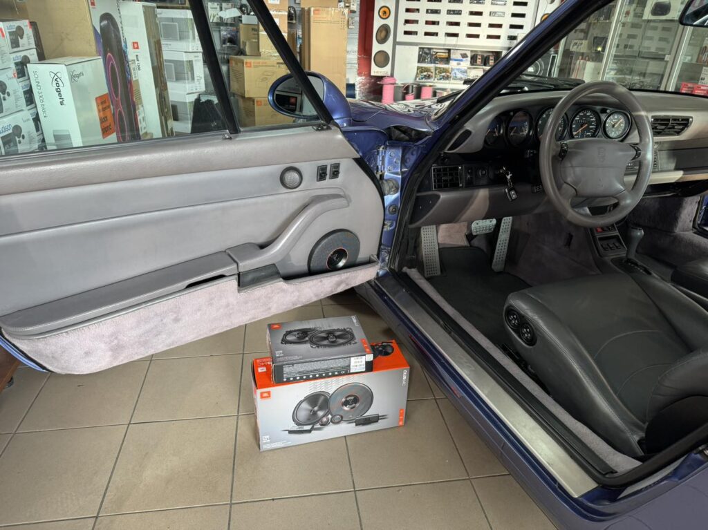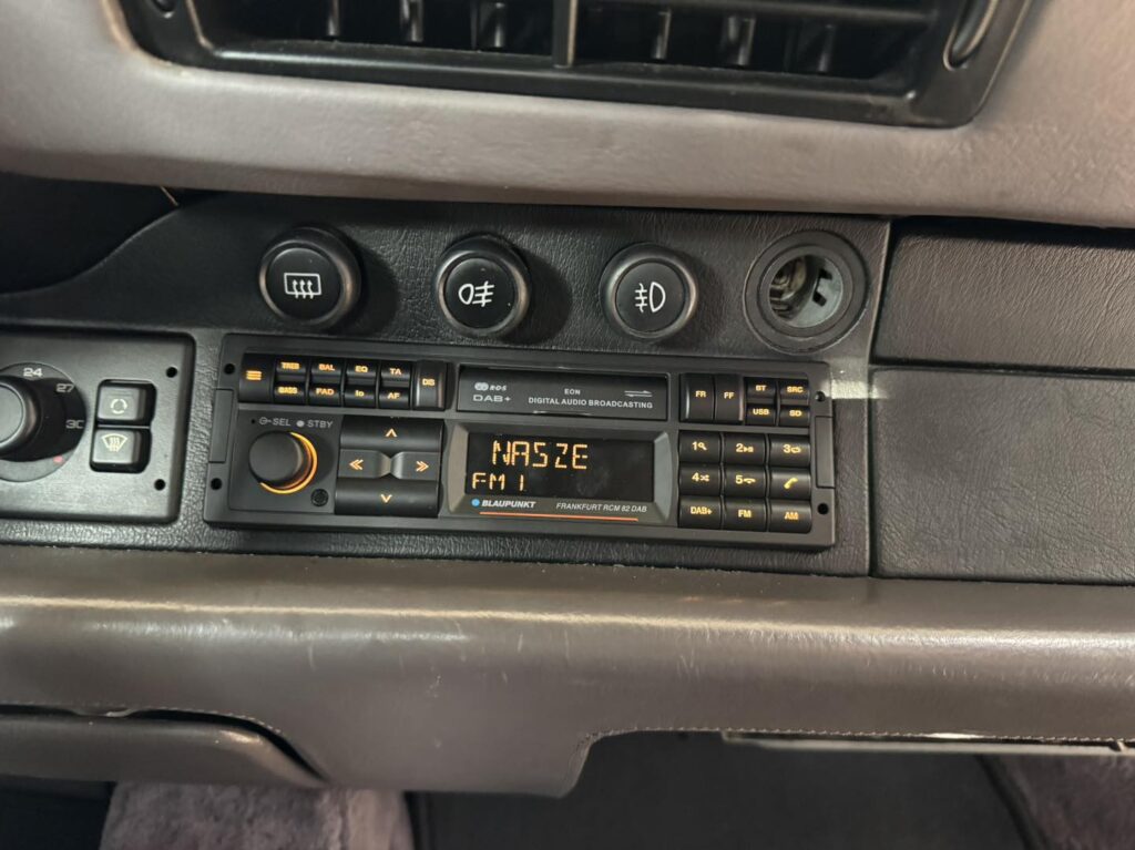 Montaż został wykonany precyzyjnie, bez ingerencji w fabryczne wiązki, zachowując oryginalny charakter auta. Radio Blaupunkt zostało zintegrowane z klasycznym wnętrzem i płytkim tunelem. Uzyskaliśmy efekt przestrzennego dźwięku – od głębokich basów (55 Hz) po subtelne wysokie tony (20 kHz).