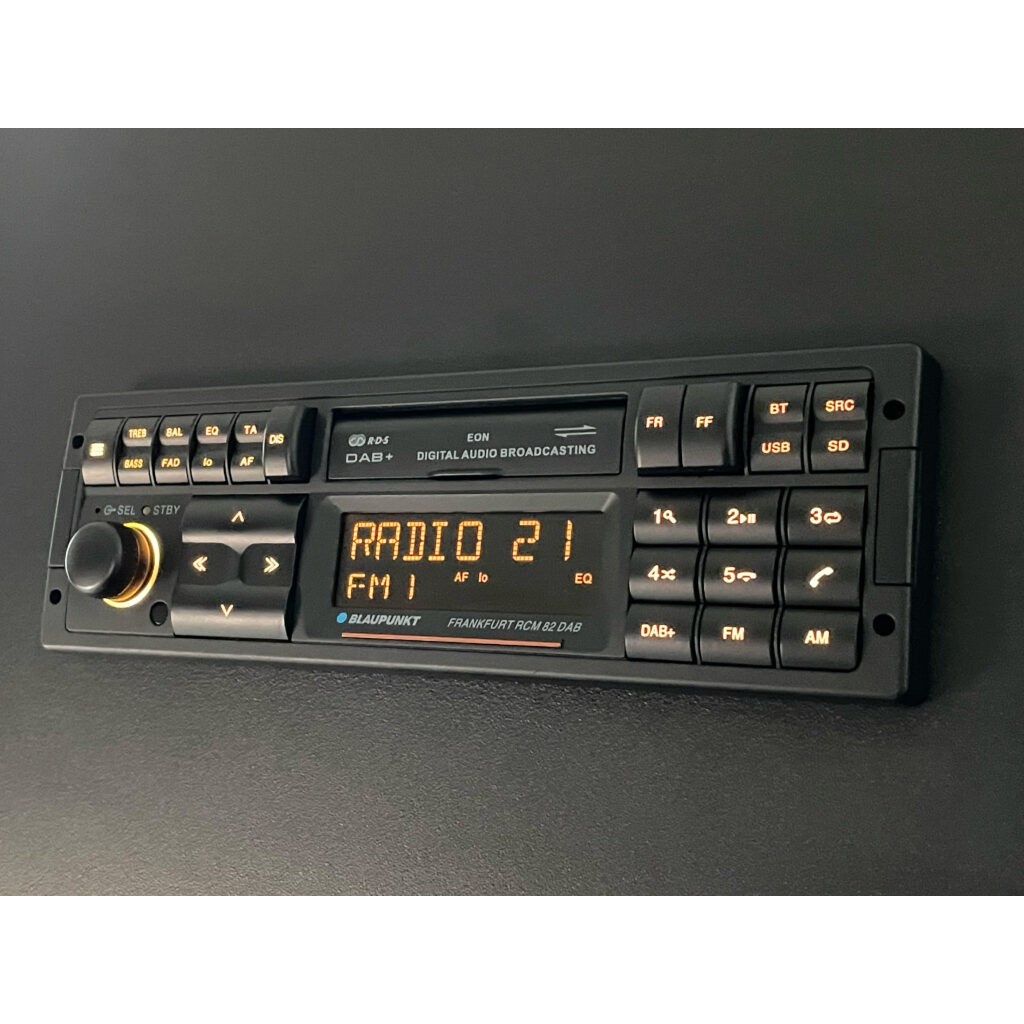 Oryginalne urządzenie było często montowane w latach 90. w VW Golf III, Ford Escort, BMW E30/E34/E36, Opel Kadett, MB W124/R129/W140, Porsche 911/944/928 i wielu innych. Teraz powraca jako Frankfurt RCM 82 DAB w starym przebraniu, ale z najnowszą technologią. A dzięki Variocolour (4096 kolorów) podświetlane przyciski i wyświetlacz można idealnie dopasować do koloru modelu samochodu, aby uzyskać spójny ogólny obraz.