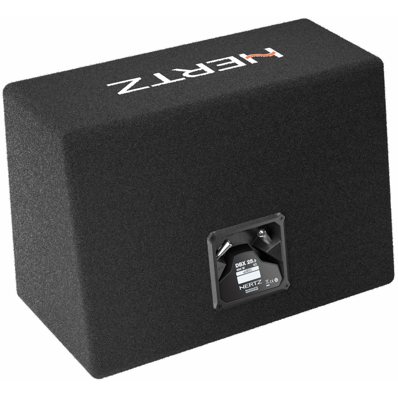 Hertz DBX 25.3 to skrzynia basowa z głośnikiem 250 mm o mocy znamionowej 150 W i szczytowej 600 W, przeznaczona do systemów audio samochodowych. Wyposażona w pasywny subwoofer o paśmie przenoszenia 32-400 Hz, czułości 89 dB i impedancji 4 Ω. Posiada bardzo grubą obudowę MDF o sztywnej konstrukcji oraz skośny panel tylny redukujący odbicia fal.
