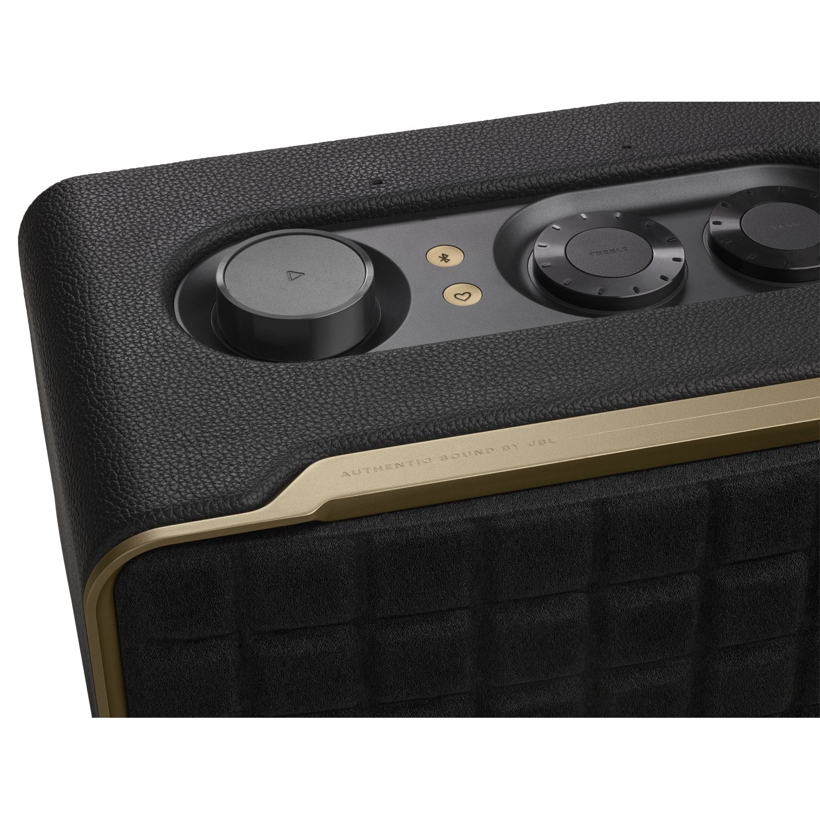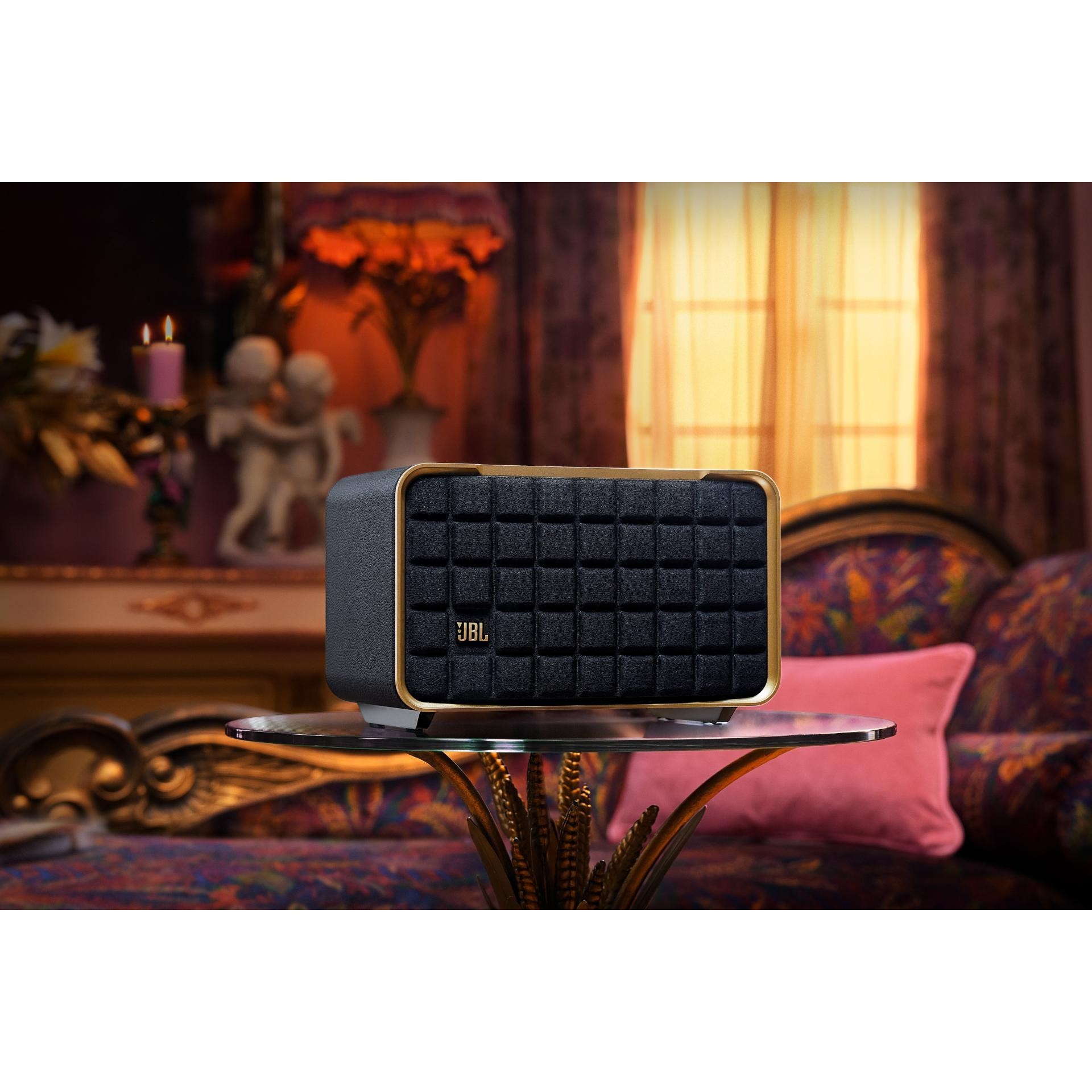 JBL Authentics 200 to inteligentny głośnik domowy w stylu retro z łącznością Wi-Fi, Bluetooth 5.3 i asystentami głosowymi. Oferuje system dźwiękowy stereo 2.0 o mocy 90W z dwoma głośnikami wysokotonowymi 25mm, pełnozakresowym głośnikiem niskotonowym 5 cali oraz 6-calowym pasywnym radiatorem. Ponadto obsługuje AirPlay, Chromecast built-in, Spotify Connect oraz funkcję Multi-Room z automatyczną kalibracją dźwięku.