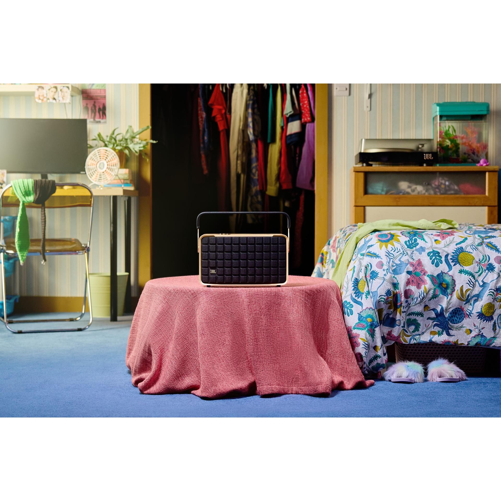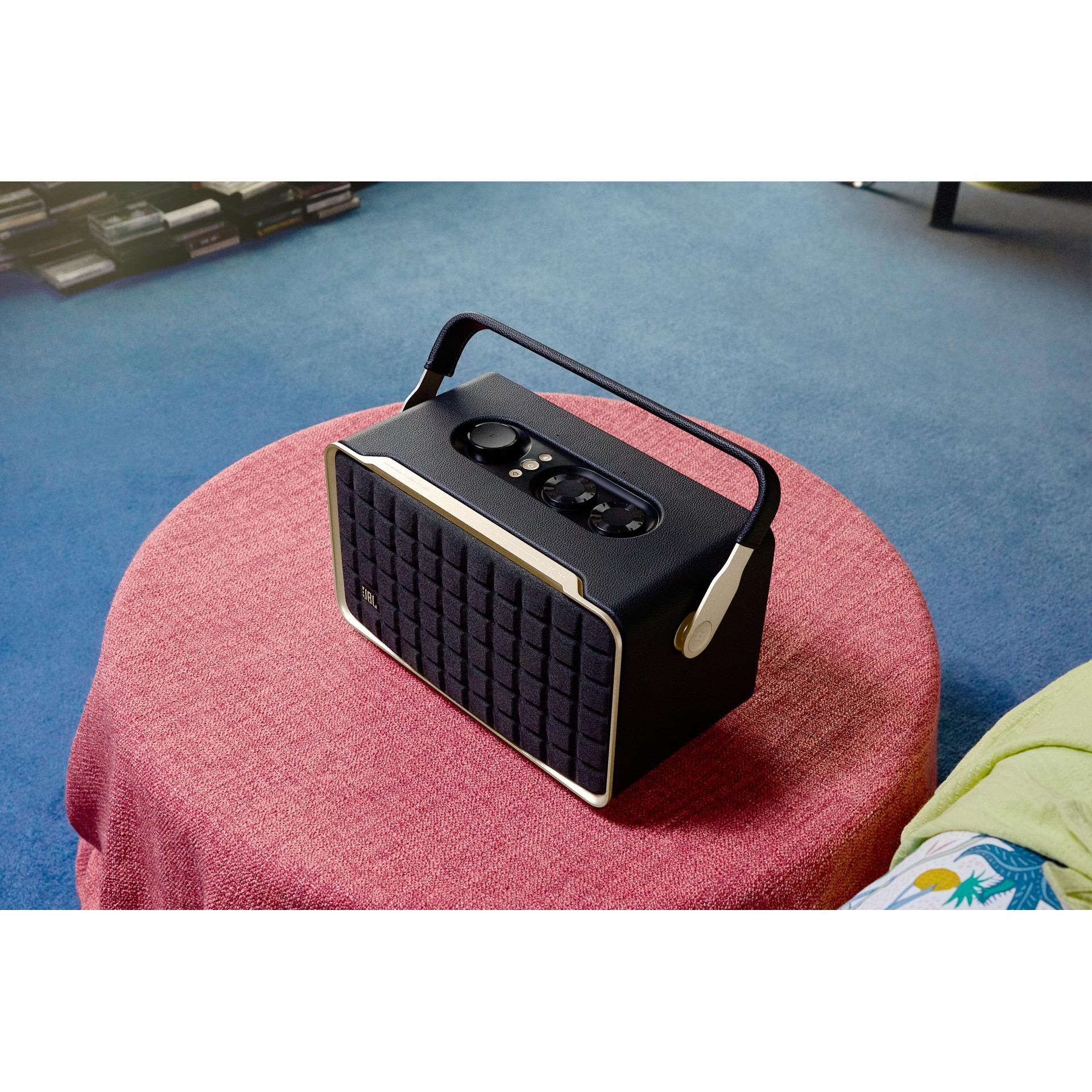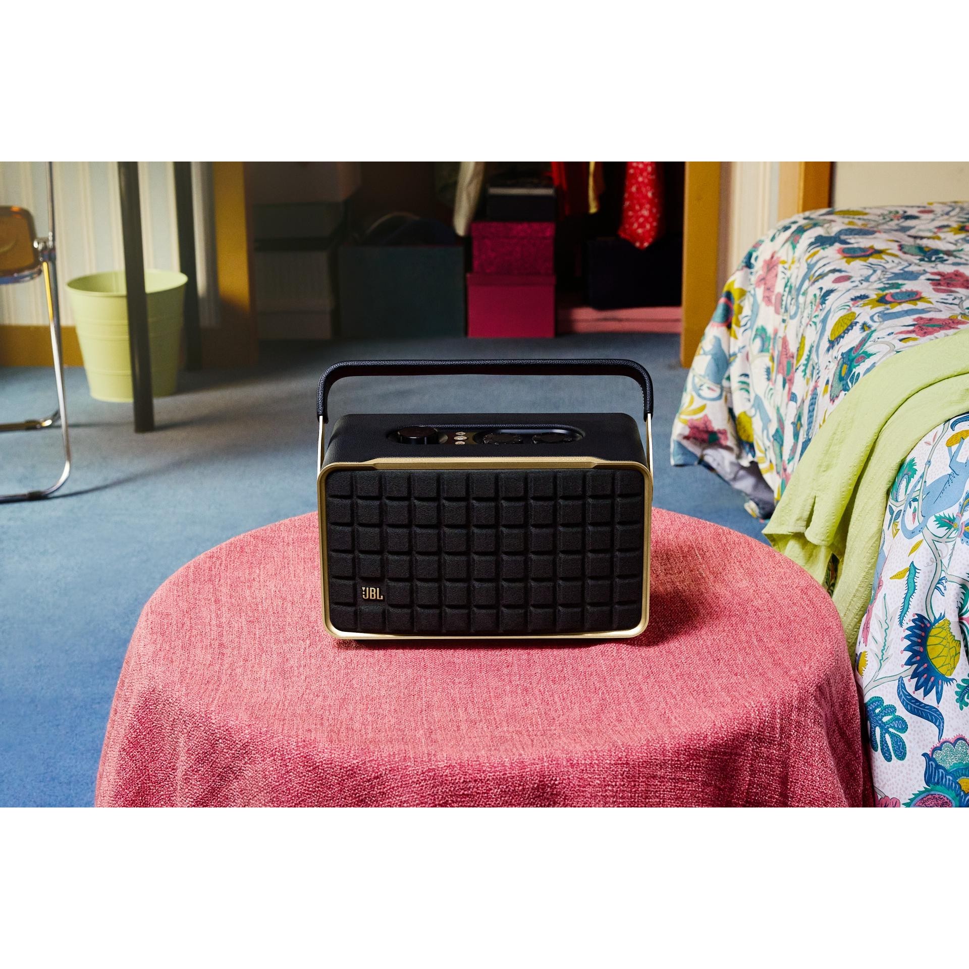 JBL Authentics 300 to jedyny spośród trzech modeli nowej serii JBL Authentics, który jest przenośny i posiada wbudowany akumulator zapewniający do 8 godzin pracy. Dzięki skórzanej obudowie głośnika, wygodnemu metalowemu uchwytowi i wbudowanemu akumulatorowi muzykę można zabrać ze sobą w każde miejsce – od kuchni po sypialnię, a nawet w podróż. Design inspirowany stylem retro z lat 70. z kultową kratą Quadrex robi wrażenie w każdym miejscu.
