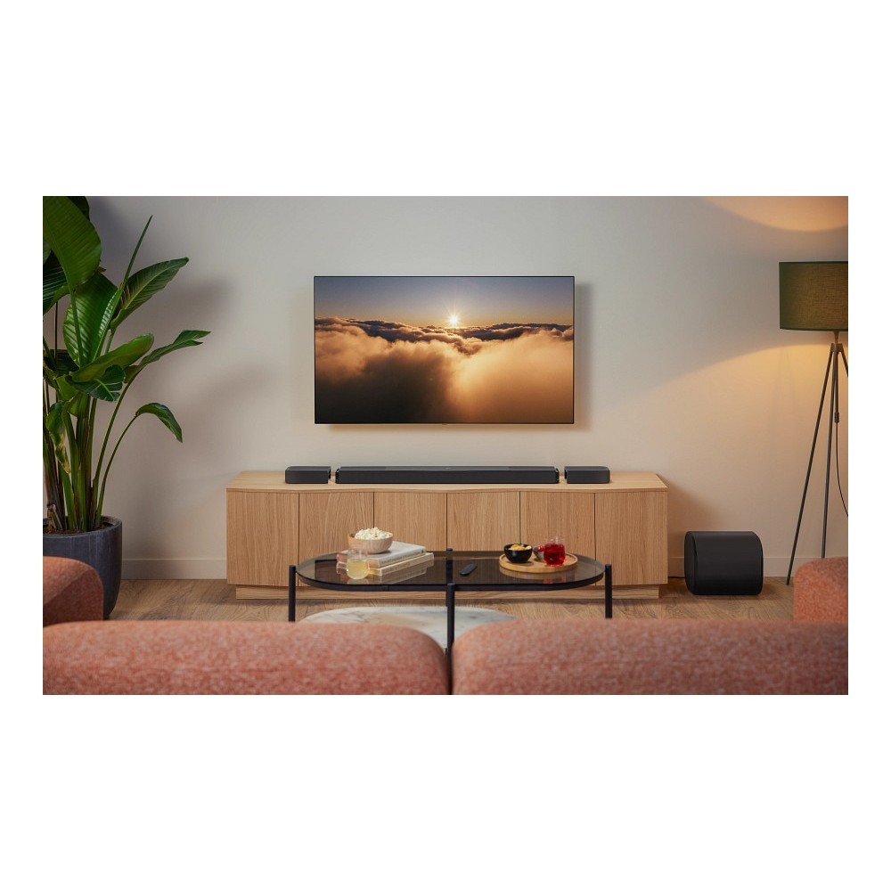 System umożliwia zanurzenie się w przestrzennym dźwięku 3D o jakości kinowej dzięki technologiom True Dolby Atmos i DTS:X. Technologie te pozwalają poczuć wybuchy przelatujące przez ciało oraz doświadczyć muzyki jak w studiu nagraniowym.