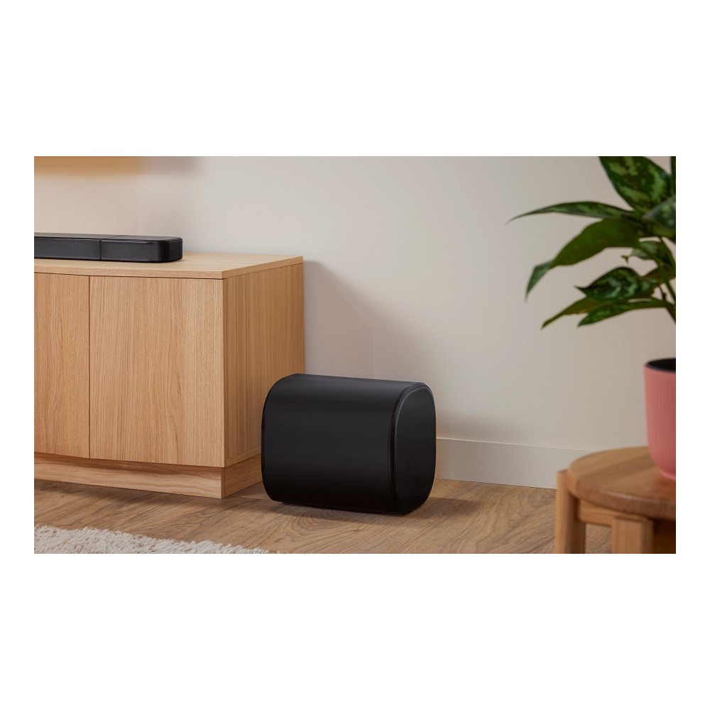 Dzięki oszałamiającej całkowitej mocy wyjściowej 2470 W filmy, muzyka i gry brzmią jak w najwyższej klasy kinie. Wydajny subwoofer z dwoma przetwornikami o mocy 8″ zapewnia niezwykłą moc wyjściową 1200 W przy małej, elegancko zaokrąglonej sylwetce, która wtapia się w wystrój pomieszczenia. Funkcja AI Sound Boost pomaga obu przetwornikom osiągnąć maksymalne możliwości, dzięki czemu można usłyszeć cały zakres dynamiki z lepszym i mocniejszym dźwiękiem z kompaktowego subwoofera.