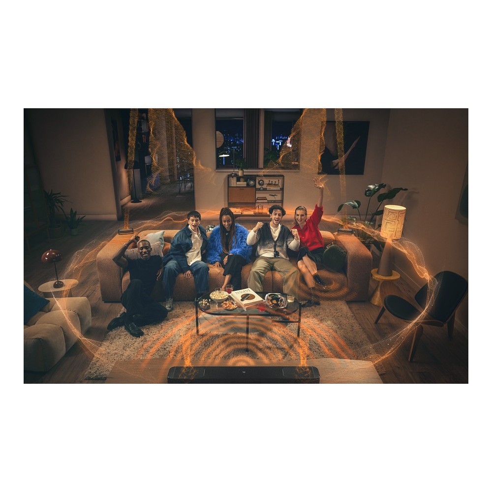 System MultiBeam 3.0 zapewnia szeroką, kinową scenę dźwiękową, która ożywia każdą szybką scenę pościgu lub epicką scenę walki. Wiązki dźwięku idealnie wypełniają pomieszczenie, zapewniając prawdziwie wciągające i realistyczne odwzorowanie dźwięku.