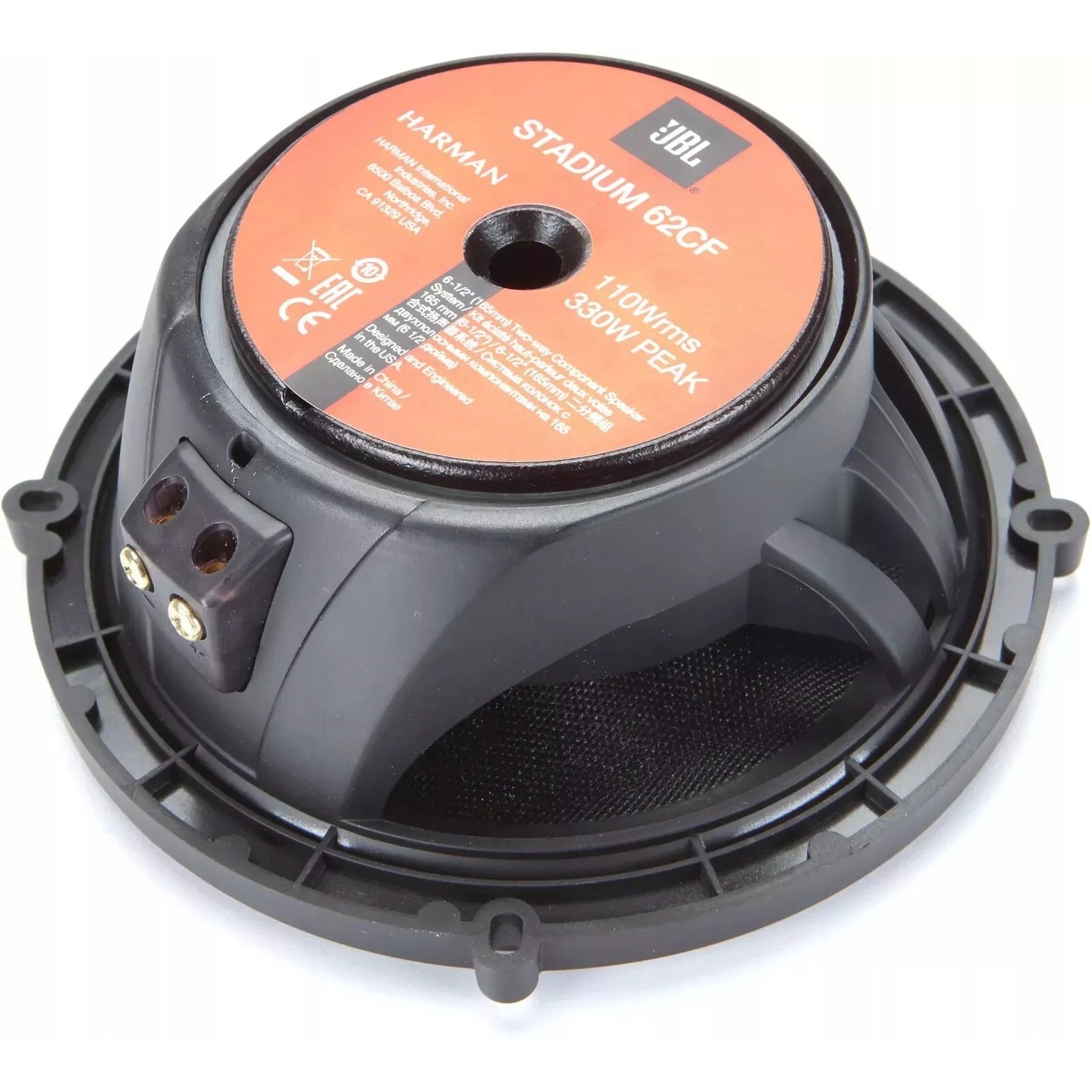 JBL Stadium 62CF to zaawansowane dwudrożne głośniki samochodowe o średnicy 6,5 cala (165 mm), które oferują wyjątkową jakość dźwięku i niezawodność. Dzięki zastosowaniu najnowszych technologii, te głośniki zapewniają doskonałe brzmienie z mocą ciągłą 110W i szczytową 330W. System komponentowy zawiera membranę z włókna szklanego z opatentowaną technologią Plus One™ oraz tweeter z aluminiową kopułką Edge Driven.