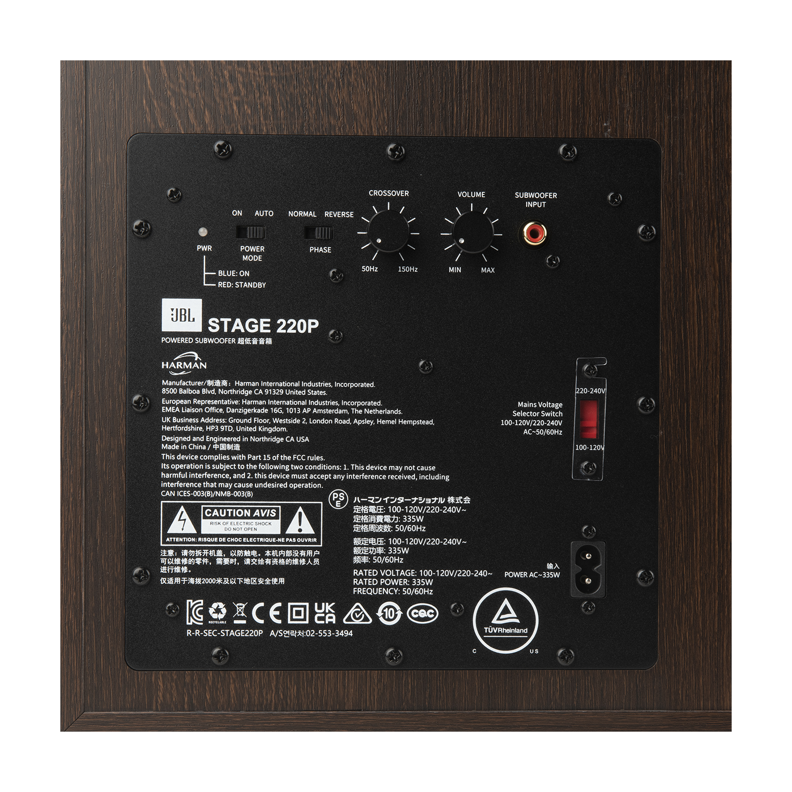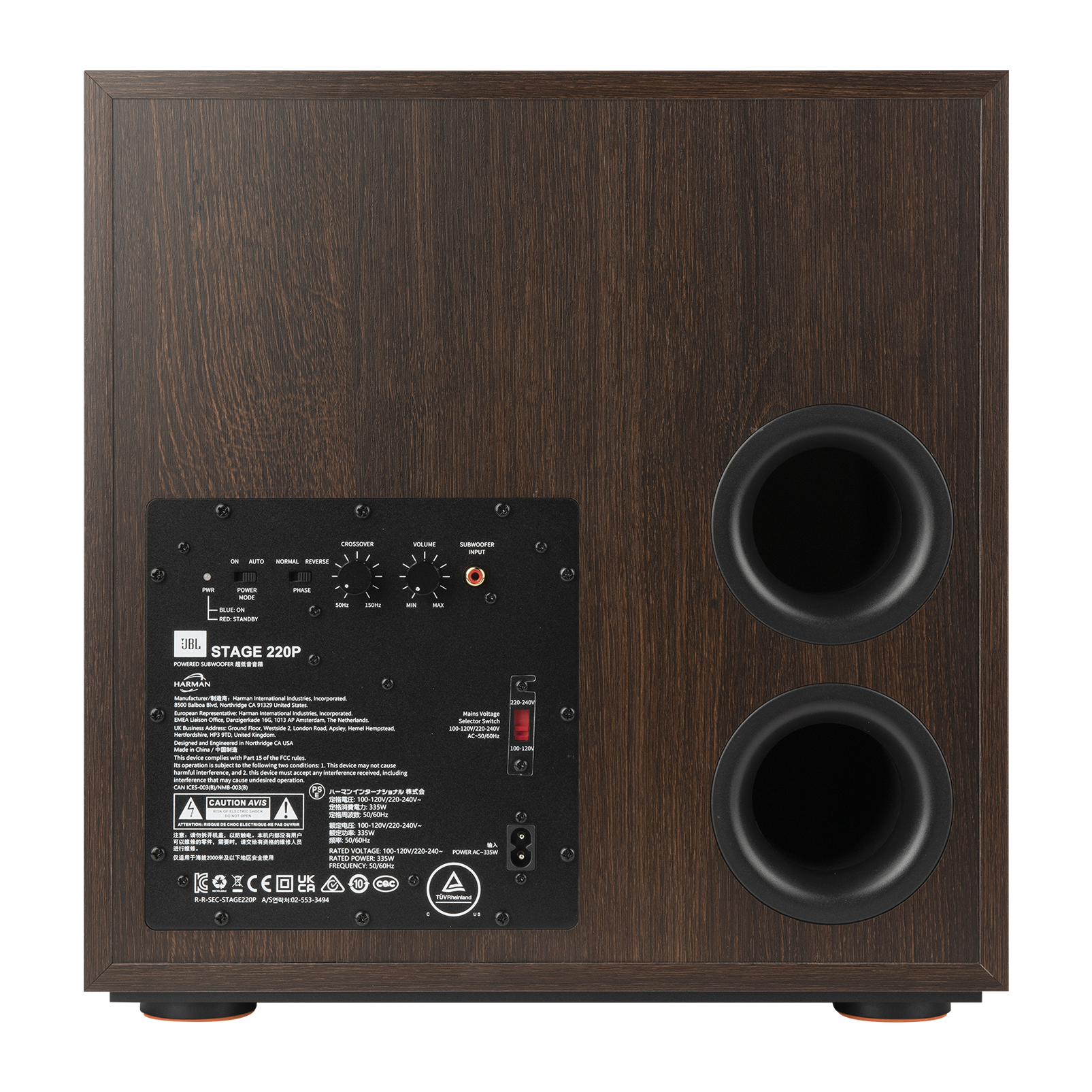 JBL Stage 220P o mocy 500 W to najpotężniejszy subwoofer z serii Stage, który zapewnia emocjonujące brzmienie basów, którego pragną użytkownicy, zaprojektowany i skonstruowany w znanym na całym świecie zakładzie Acoustic Engineering Center of Excellence firmy JBL w Northridge w Kalifornii. Subwoofer jest wyposażony w głośnik niskotonowy 12” (300 mm) z membraną policelulozową z dwoma dostrojonymi tylnymi portami, który zapewnia legendarne, głębokie brzmienie basów JBL. Pełny zestaw elementów sterujących umożliwia łatwą integrację systemu.