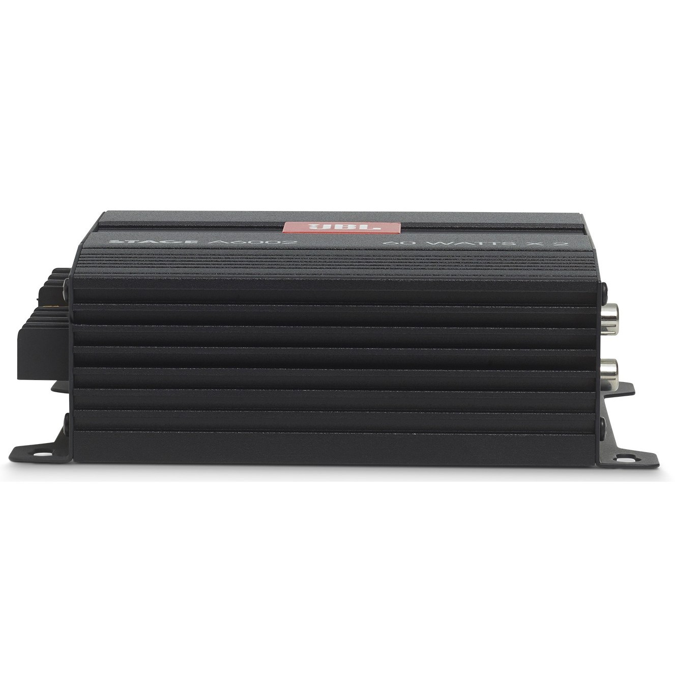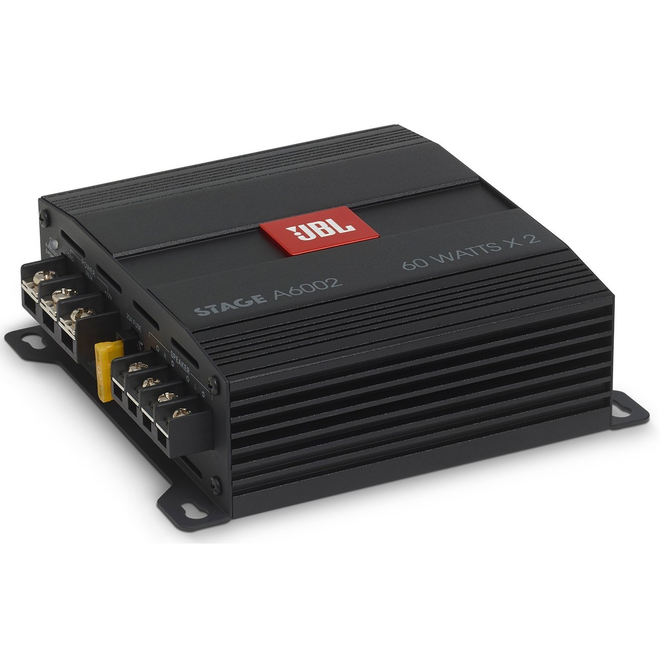 JBL Stage A6002 to cyfrowy wzmacniacz samochodowy klasy D o mocy 280W z dwoma kanałami wzmocnienia. Oferuje moc 2 x 60W RMS przy 4 Ohm oraz 2 x 70W RMS przy 2 Ohm, wyposażony w wbudowaną zwrotnicę i regulację podbicia basu Bass EQ. Ponadto posiada filtry górnoprzepustowy i dolnoprzepustowy zmienne 32-320 Hz oraz obwody ochronne przed zwarciem, temperaturą, przepięciem i podnapięciem. Dostępny w kolorze czarnym.