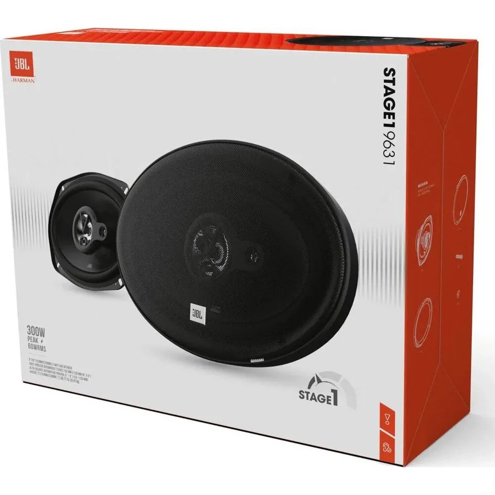 Głośniki JBL Stage1 9631 to 3-drożne głośniki współosiowe o wymiarach 6×9″ (152 x 229 mm) przeznaczone do montażu samochodowego. Wyposażone w technologię Plus One™ oferują moc znamionową 50W i maksymalną 300W przy impedancji 4 Ohm i skuteczności 92 dB. Dzięki trójdrożnej konstrukcji współosiowej zapewniają szerokie pasmo przenoszenia 55 Hz – 20 kHz oraz łatwy montaż bez dodatkowego okablowania.