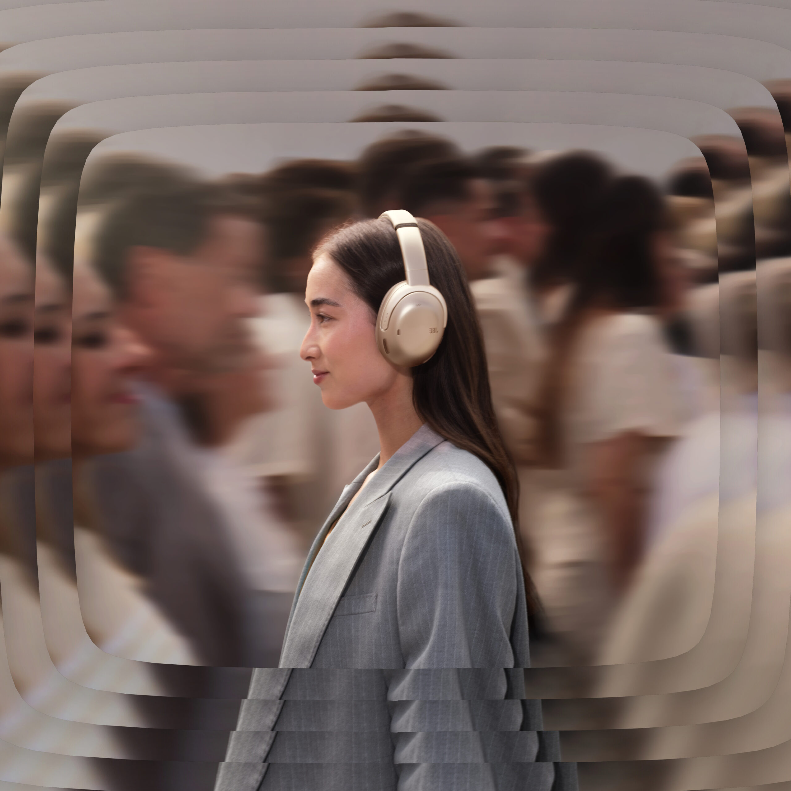 Wiatr, hałas uliczny i rozmowy w miejscu pracy znikają. 8 mikrofonów (po 4 w każdej muszli słuchawek) nasłuchuje odgłosów otoczenia w czasie rzeczywistym i automatycznie zwraca odwrotną fazę, dzięki czemu prawie nie słychać niczego poza muzyką. A jeśli chcesz zyskać nieco większą świadomość swojego otoczenia, skorzystaj z funkcji Ambient Aware i TalkThru w aplikacji JBL Headphones, aby dostosować, co i jak wiele słyszysz.