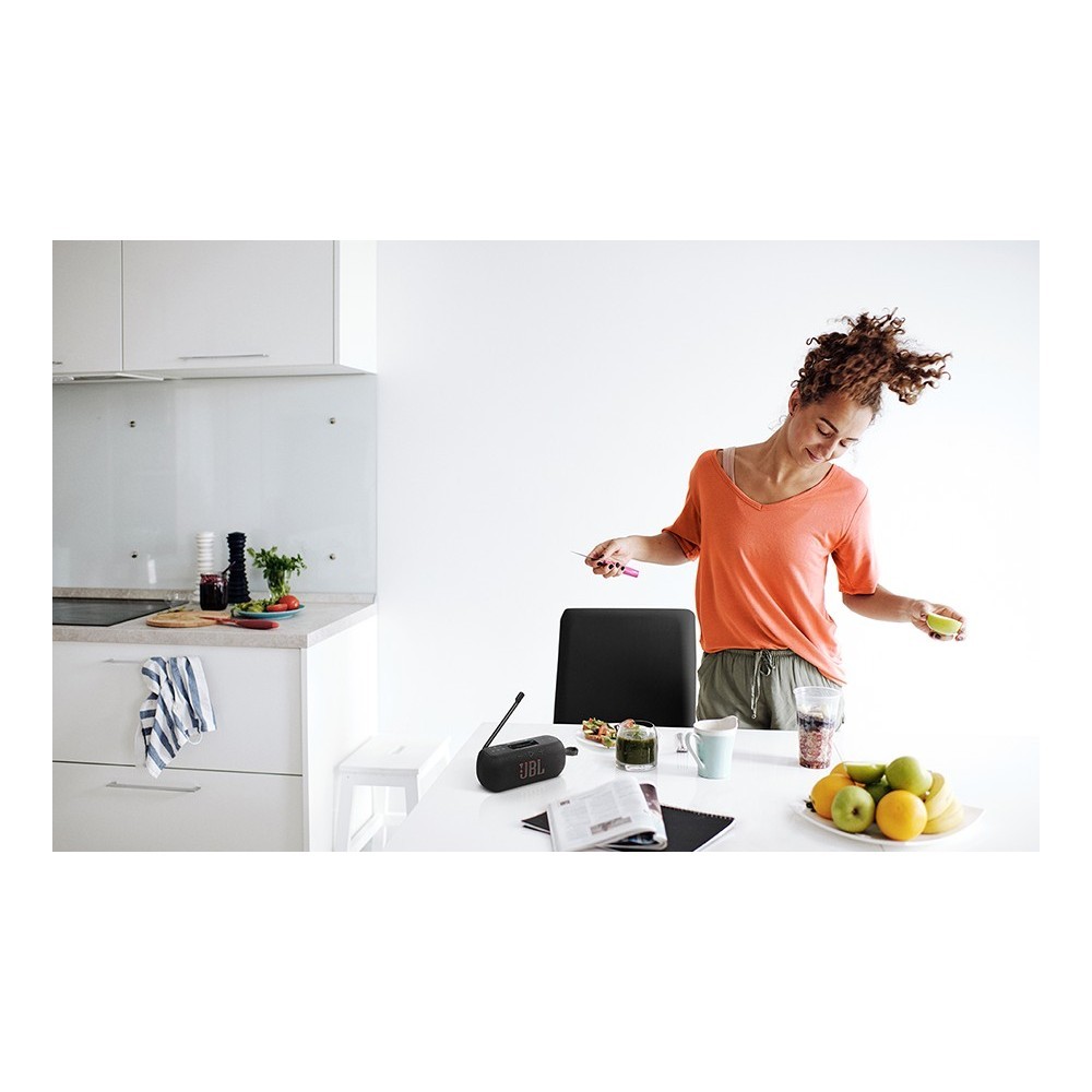 JBL Tuner 3 to przenośne radio DAB/DAB+/FM z głośnikiem Bluetooth, które oferuje potężne brzmienie podczas słuchania stacji radiowych i muzyki przesyłanej strumieniowo. Zapewnia wyrazisty i krystalicznie czysty dźwięk JBL Pro Sound wszędzie tam, gdzie jesteś – w kuchni, przy basenie czy na kempingu. Dzięki wzmocnieniu przetwornika radio zapewnia wystarczającą głośność, aby wypełnić dowolną przestrzeń klarownym, realistycznym brzmieniem.
