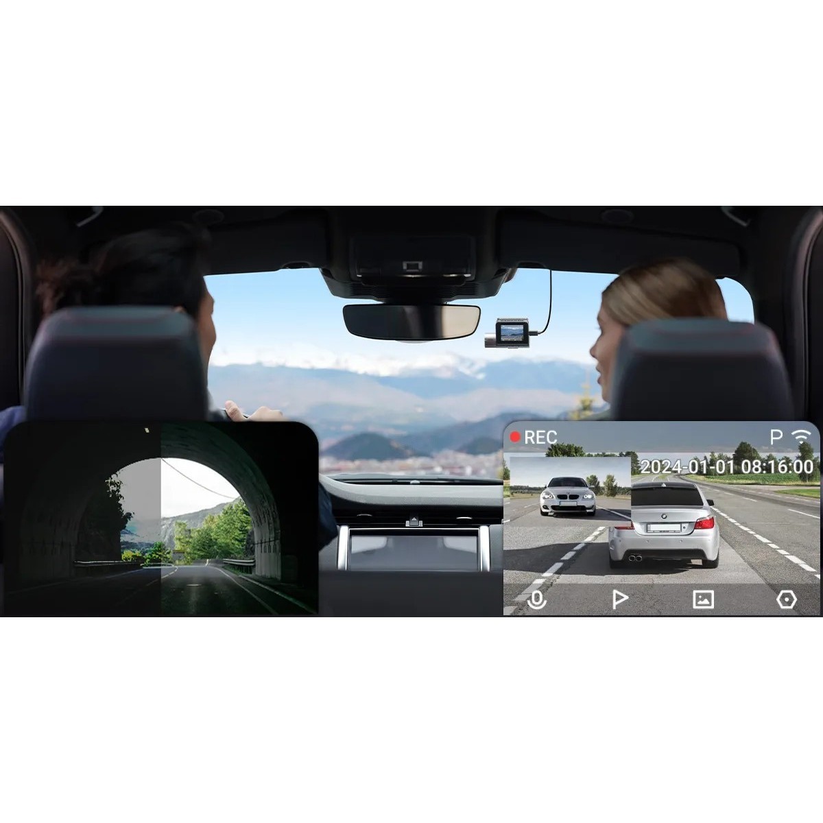 Dzięki trybowi picture-in-picture (obraz w obrazie), kamera A510 oferuje możliwość jednoczesnego wyświetlania obrazu z dwóch kamer, przedniej oraz tylnej, na jednym ekranie. To oznacza, że możesz mieć kompleksowy podgląd sytuacji podczas jazdy zarówno z przodu, jak i z tyłu pojazdu.
