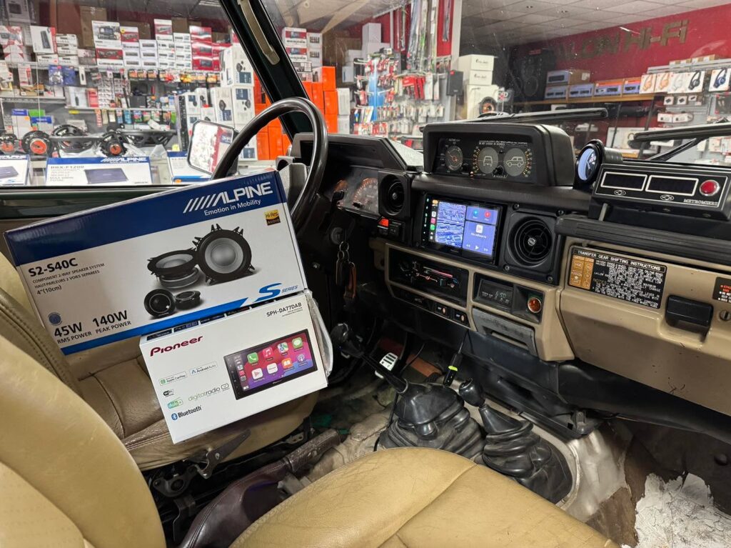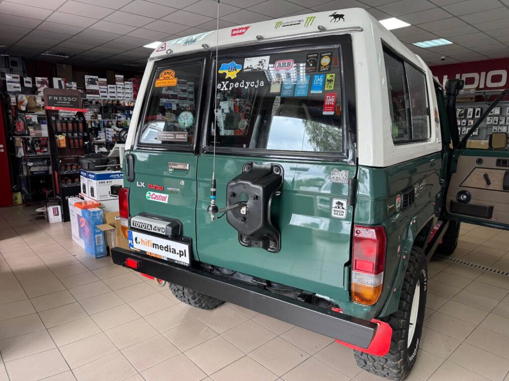 Toyota Land Cruiser LJ73 z 1988 roku | Radio Pioneer SPH-DA77DAB, głośniki Alpine S2-S40C, subwoofer Alpine SWE-815